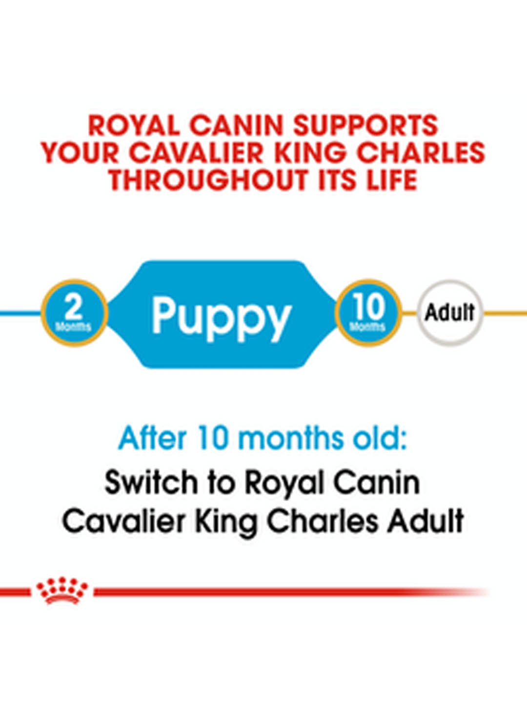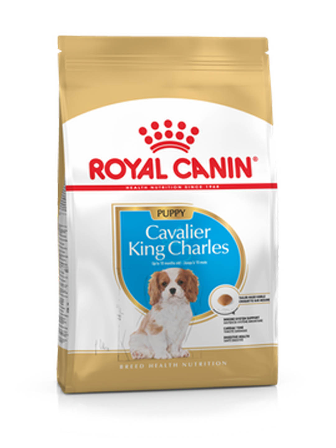 Η ανάπτυξη είναι ένα βασικό στάδιο στη ζωή του κουταβιού του King Charles Cavalier. Κατά τη διάρκεια αυτής της βασικής περιόδου, το ανοσοποιητικό σύστημα του κουταβιού σας αναπτύσσεται σταδιακά. Αυτός είναι ο λόγος για τον οποίο είναι σημαντικό να επιλέξετε μία τροφή που παρέχει στον σκύλο σας θρεπτικά συστατικά που υποστηρίζουν τη βέλτιστη υγεία. Κατάλληλο για κουτάβια ηλικίας έως 10 μηνών, το ROYAL CANIN® Cavalier King Charles Puppy είναι ειδικά διαμορφωμένο με όλες τις διατροφικές ανάγκες του αναπτυσσόμενου κουταβιού σας στο μυαλό. Το ROYAL CANIN® Cavalier King Charles Puppy περιέχει ένα κατοχυρωμένο με δίπλωμα ευρεσιτεχνίας σύμπλεγμα αντιοξειδωτικών που βοηθούν στην υποστήριξη της φυσικής άμυνας του κουταβιού καθώς αναπτύσσεται το ανοσοποιητικό του σύστημα. Με βάση τα ωμέγα-3 λιπαρά οξέα (EPA και DHA) Το CANIN® Cavalier King Charles Puppy περιέχει όλα τα θρεπτικά συστατικά που είναι απαραίτητα για την υποστήριξη της υγιούς καρδιακής λειτουργίας. Αυτή η φόρμουλα περιέχει ένα συγκεκριμένο συνδυασμό θρεπτικών συστατικών με υψηλής ποιότητας πρωτεΐνες (LIP) ειδικά επιλεγμένα για την υψηλή της αφομοιωσιμότητά τους. Επιπλέον, το ROYAL CANIN® Cavalier King Charles Puppy περιέχει αποκλειστική, εξατομικευμένη κροκέτα. Η αποκλειστική φόρμουλα περιέχει ένα χηλικό παράγοντα ασβεστίου που βοηθά να μειωθεί η πιθανότητα σχηματισμού ταρτάρου στα δόντια και τα ούλα του σκύλου σας.