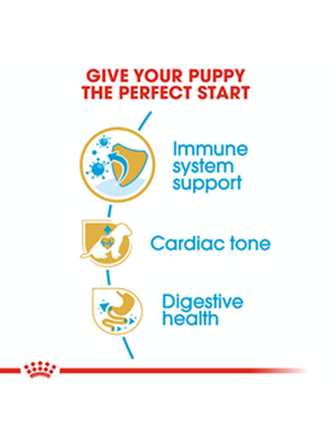 Συνδυασμός θρεπτικών ουσιών με υψηλής ποιότητας πρωτεΐνες (L.I.P. *) και πρεβιοτικά (FOS) για την υποστήριξη της πεπτικής υγείας και της ισορροπίας της εντερικής χλωρίδας, η οποία συμβάλλει στην καλή ποιότητα των κοπράνων. * Πρωτεΐνη που επιλέγεται για την πολύ υψηλή της πεπτικότητα.