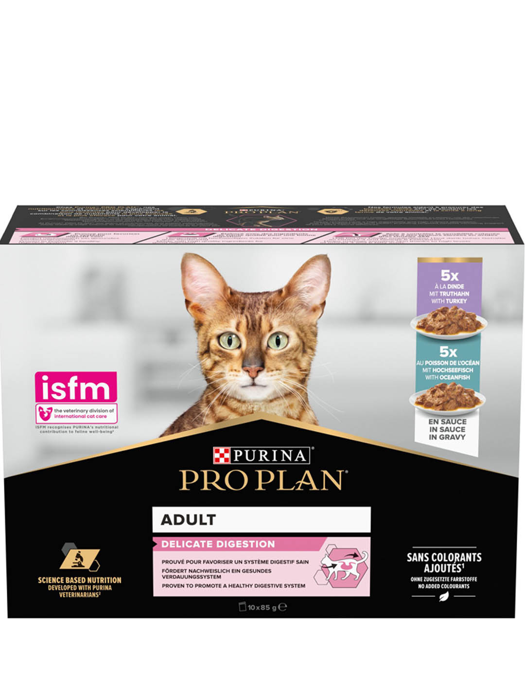 PURINA® PRO PLAN® Adult Delicate Digestion με γαλοπούλα σε σάλτσα που έχει αποδειχθεί ότι προάγει ένα υγιές πεπτικό σύστημα