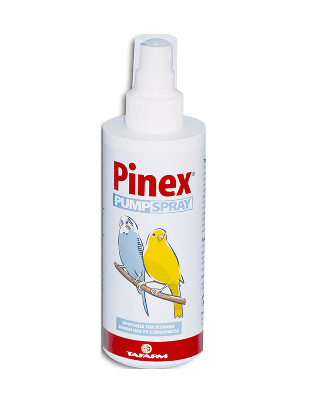 Ψείρες, κόκκινο ακάρι (εξωπαρασιτοκτόνο για το κλουβί και τον περιβάλλοντα χώρο). Το Pinex spray είναι ένα προϊόν χαμηλής τοξικότητας κατάλληλο για την καταπολέμηση των εξωπαρασίτων των ωδικών και καλλωπιστικών πτηνών.