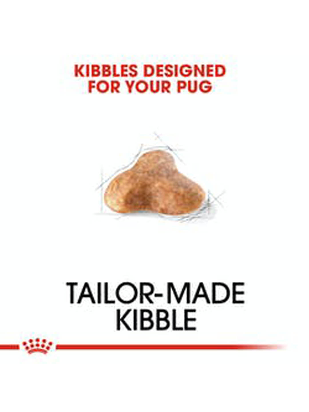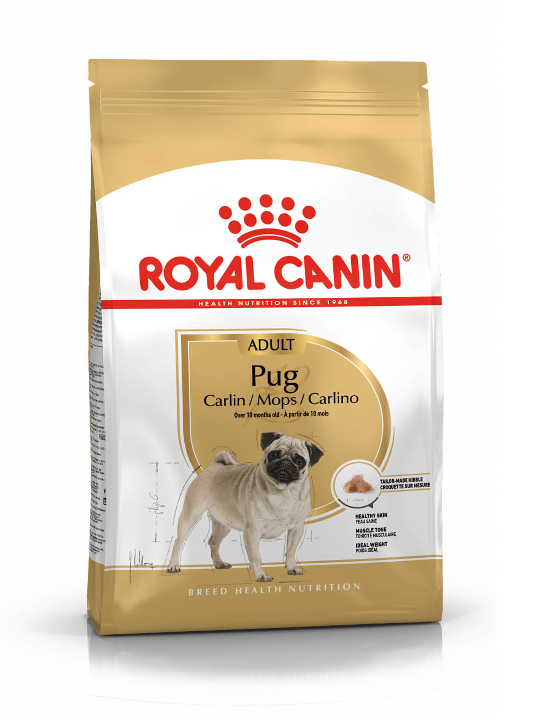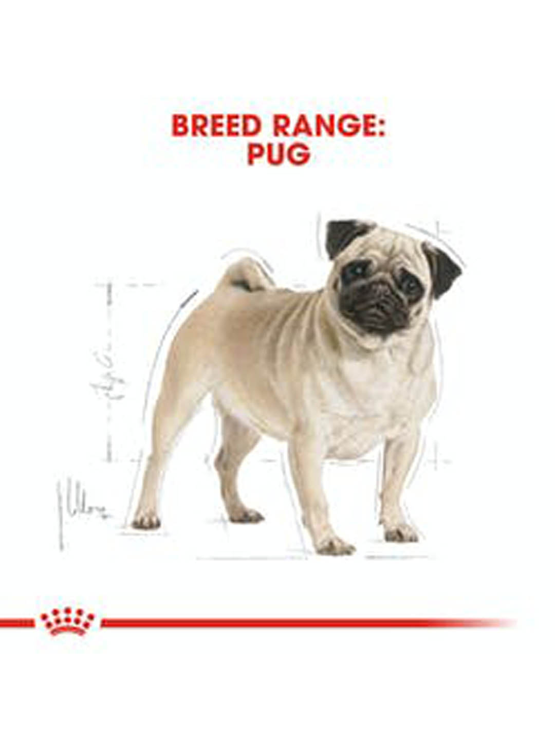 Κατάλληλο για σκύλους ηλικίας άνω των 10 μηνών, το ROYAL CANIN® Pug Adult είναι ειδικά διαμορφωμένο με όλες τις μοναδικές διατροφικές ανάγκες του Pug σας. Καθώς το δέρμα του Pug είναι διπλωμένο και οι πτυχές μπορούν να ζεσταθούν και να διατηρήσουν ανεπιθύμητη υγρασία, είναι σημαντικό η διατροφή του σκύλου σας βοηθά στη στήριξη της υγείας του δέρματός του. Η αποκλειστική φόρμουλα του ROYAL CANIN® Pug Adult βοηθά στην υποστήριξη του ρόλου του φραγμού του δέρματος καθώς και στη συνολική υγεία του δέρματος. Το Pug Adult περιέχει επίσης μια ισορροπία θρεπτικών ουσιών που βοηθούν στην υποστήριξη του μυϊκού τόνου του Pug. Τα σπρέι έχουν πολύ συγκεκριμένα χαρακτηριστικά: ένα μεγάλο κεφάλι και ένα σώμα με βραχείς, τετράγωνους μυς. Τα σαγόνια και τα πολύ χοντρά χείλη του δυσκολεύουν να πιάσει την τροφή του